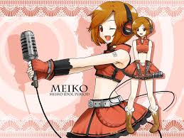 Meiko es también de los integrantes secundarios del grupo VOCALOID, en ciertas ocasiones es emparejada con Kaito, pero normalmente esta sola, el color que la representa es el rojo y su edad no está definida, aunque es claro que es mas grande que Rin, Len y Miku pero no tan grande como Luka. Tiene una muy bonita voz y alcanza notas muy altas, ella en su brazo izquierdo tiene un 00 así como los demás.